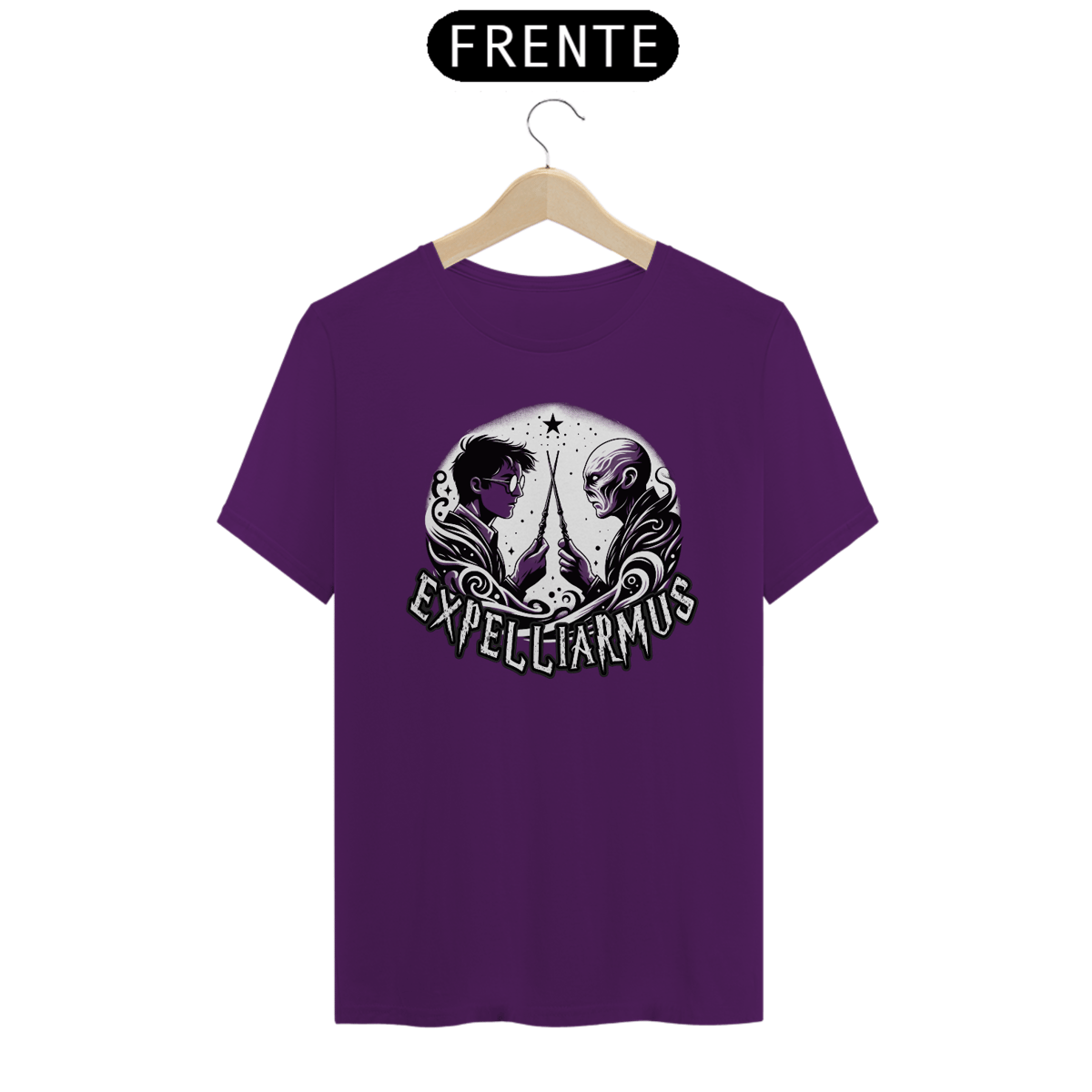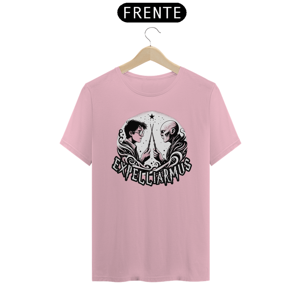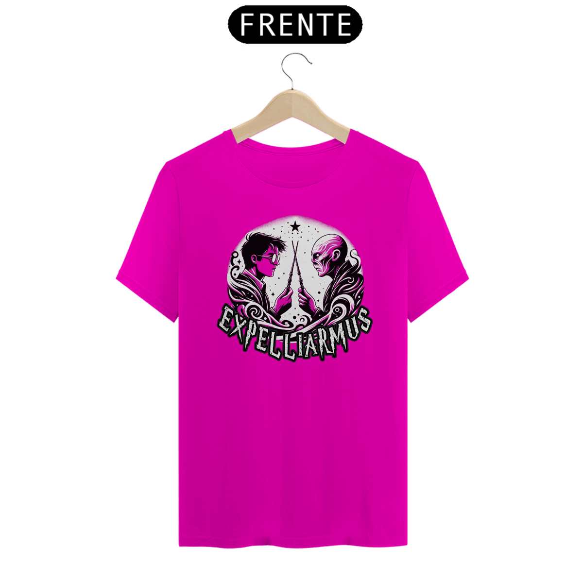 A "Camiseta - Expelliarmus" captura o emblemático duelo entre Harry Potter e Voldemort em um design minimalista. Com o feitiço "Expelliarmus", ela simboliza coragem e astúcia, conferindo +4 em Coragem e +3 em Sabedoria a quem a veste.