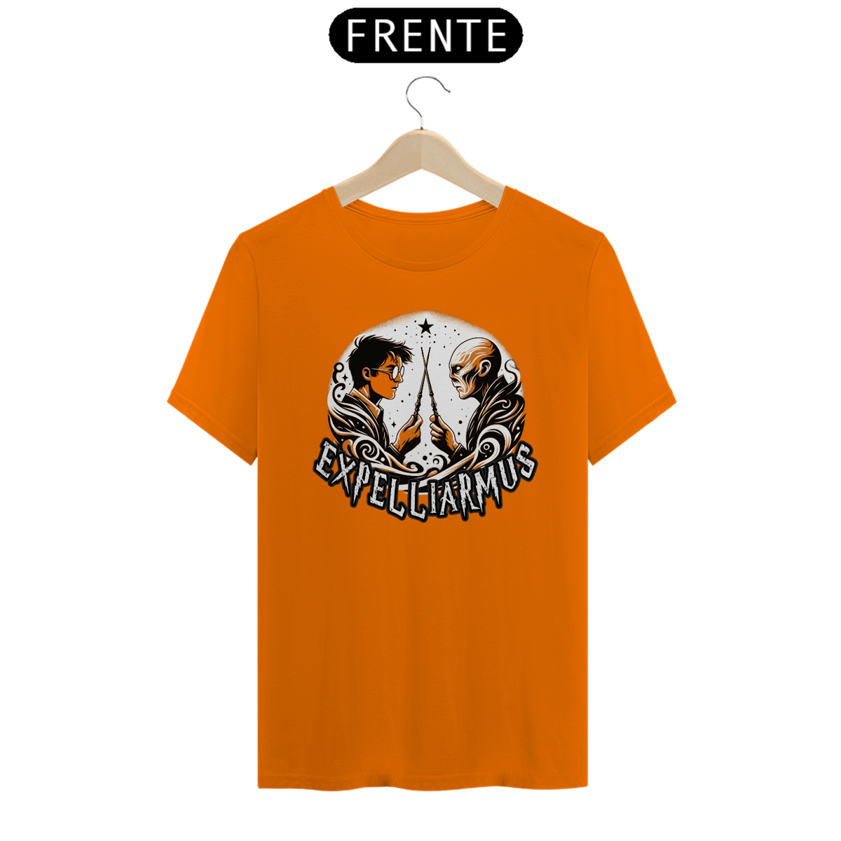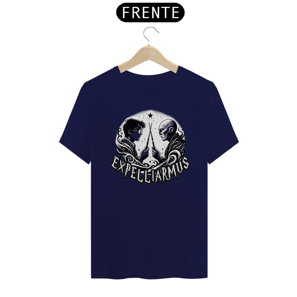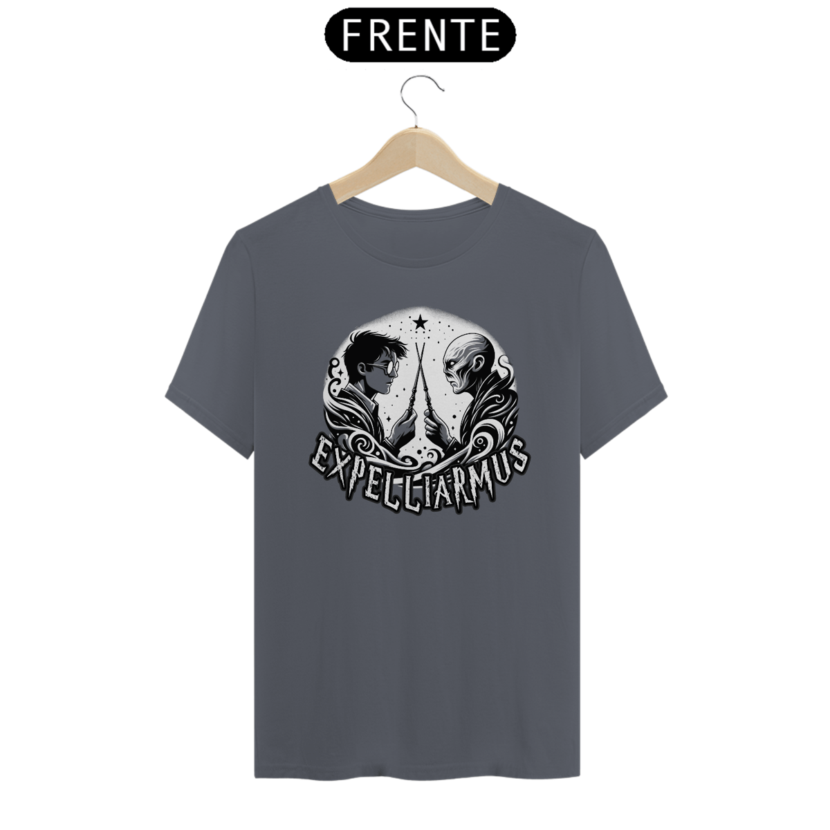 A "Camiseta - Expelliarmus" captura o emblemático duelo entre Harry Potter e Voldemort em um design minimalista. Com o feitiço "Expelliarmus", ela simboliza coragem e astúcia, conferindo +4 em Coragem e +3 em Sabedoria a quem a veste.