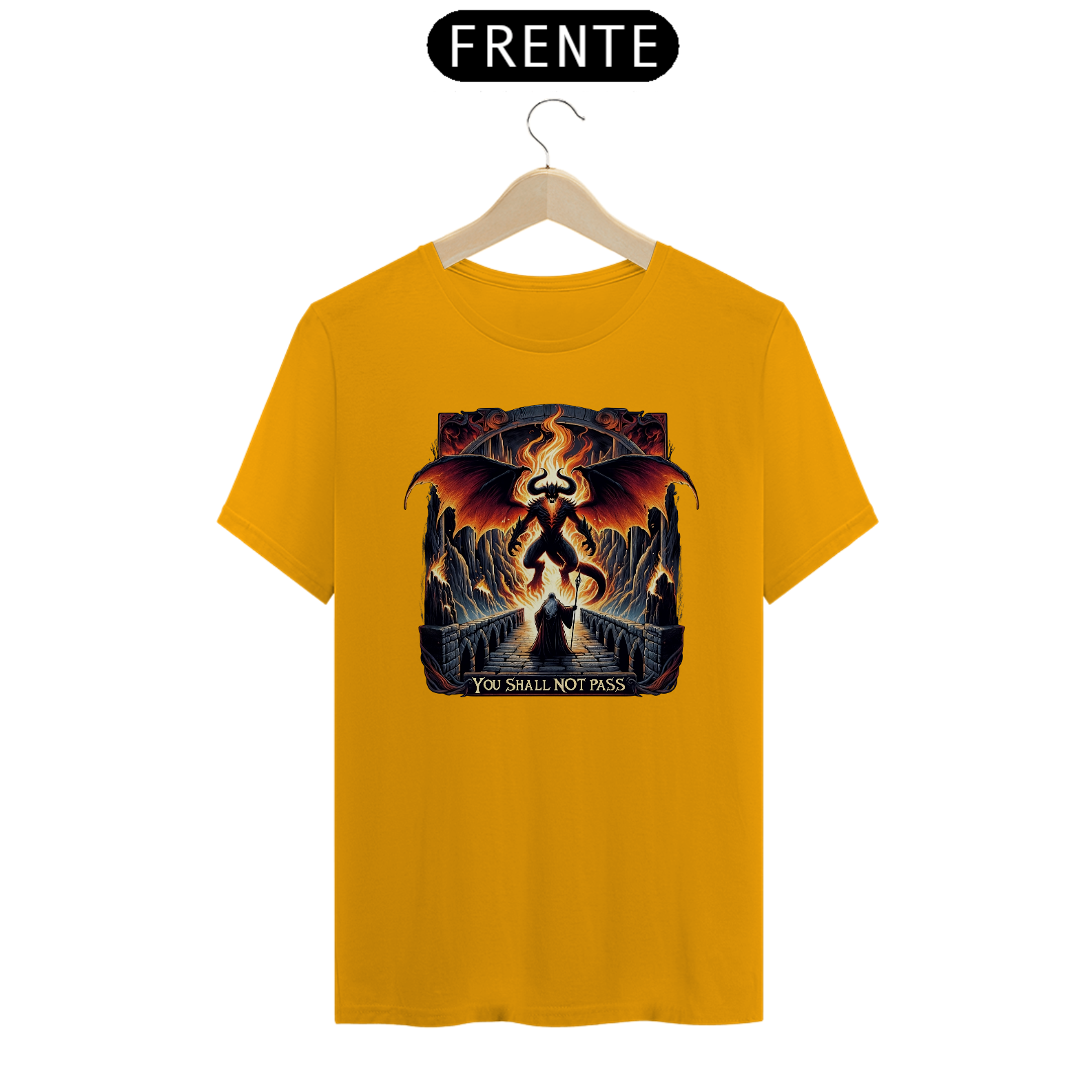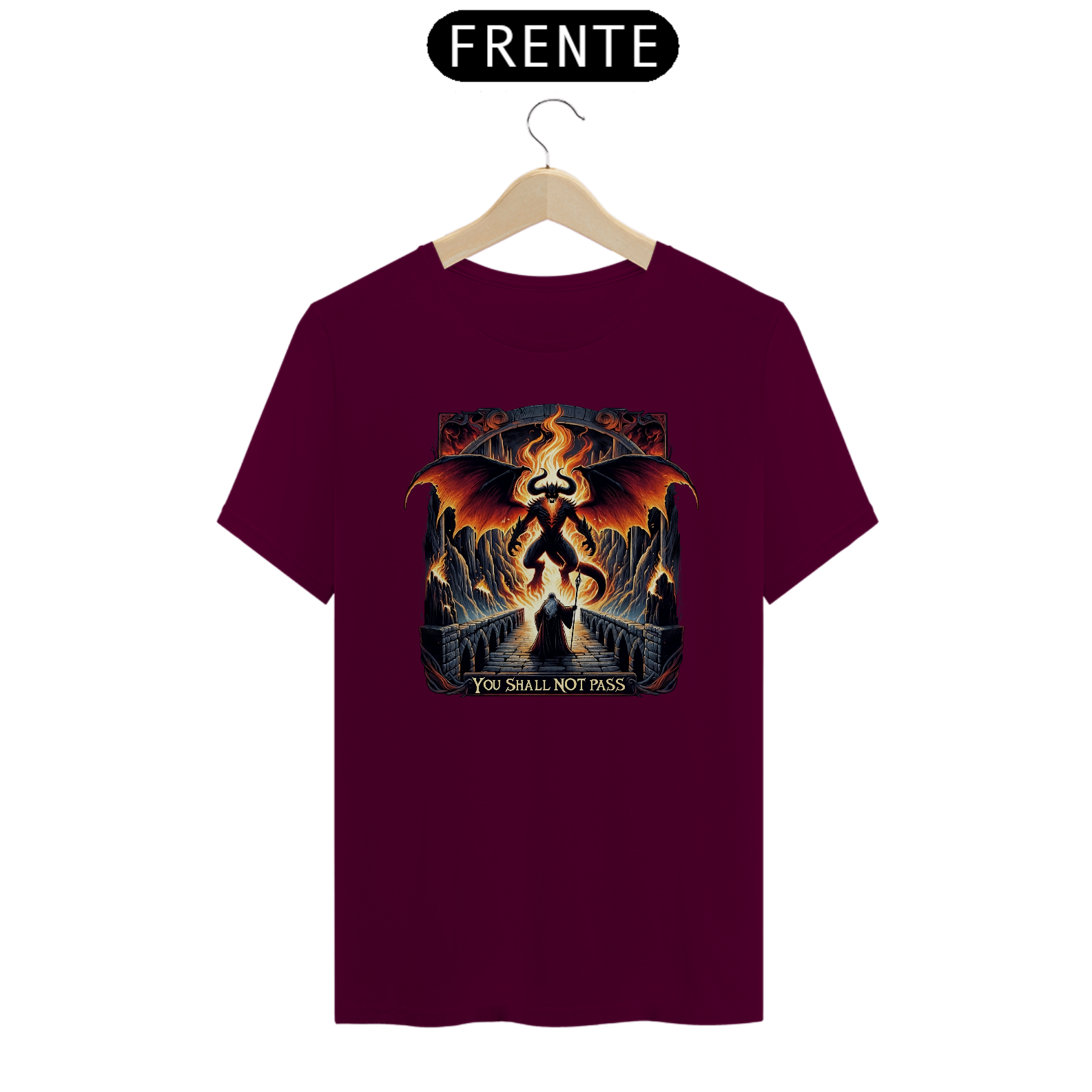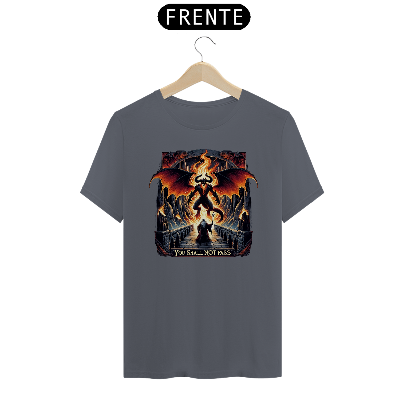 Portar esta camiseta é evocar a força e a coragem de Gandalf, oferecendo ao usuário um aumento simbólico de +5 em Determinação. É a escolha perfeita para os entusiastas da obra de Tolkien que desejam levar consigo a essência de uma das cenas mais memoráveis da saga.