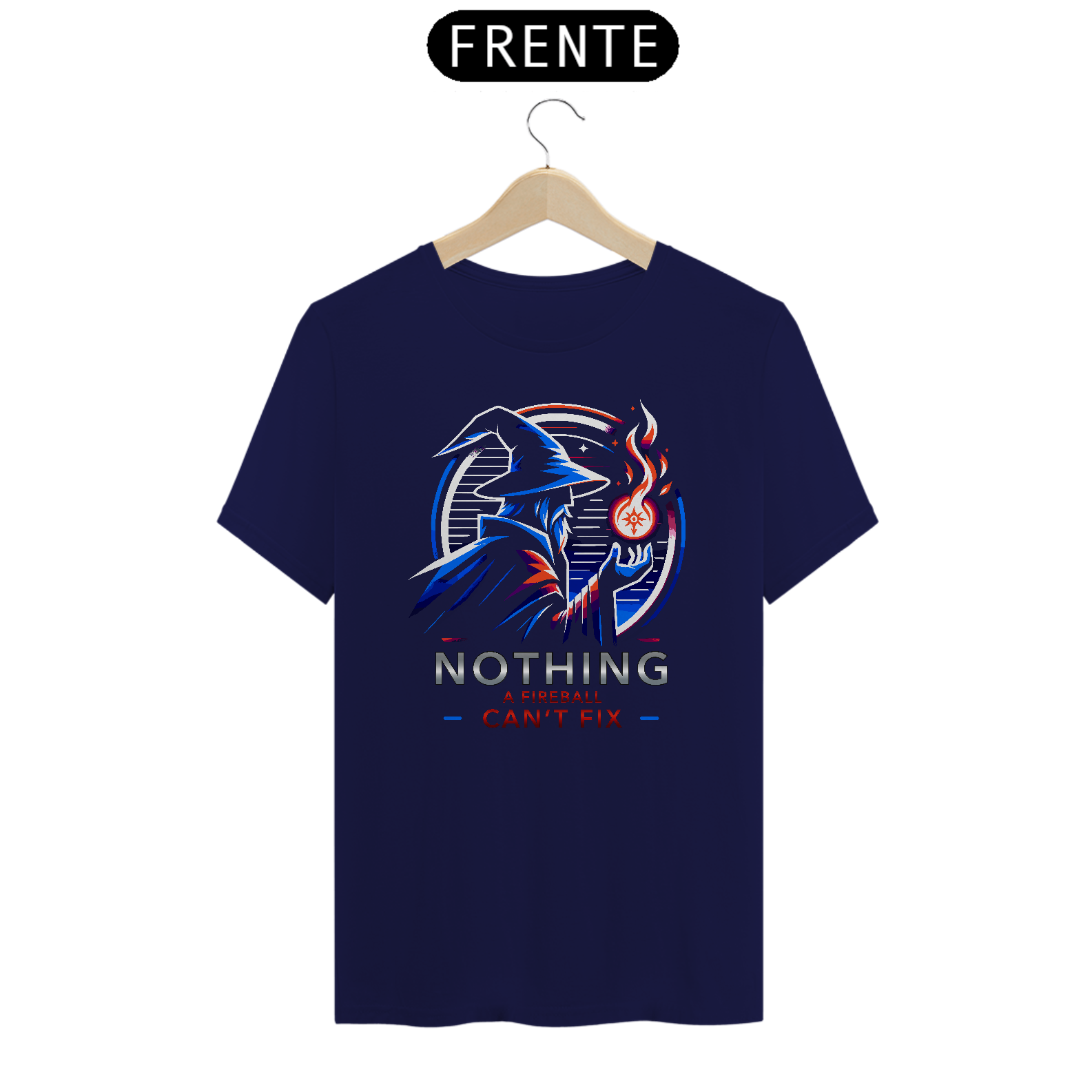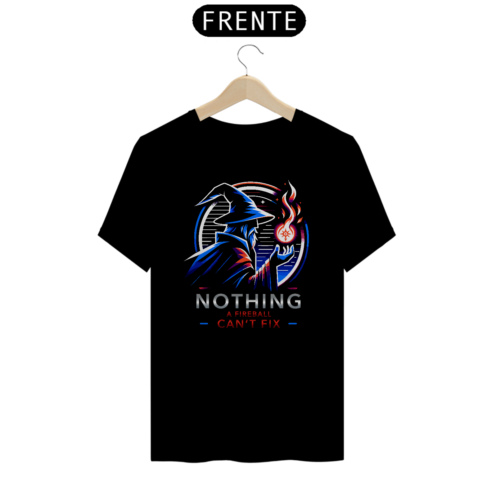 Quem precisa de soluções convencionais quando se tem a "Camiseta - Nothing a Fireball Can't Fix"? Este design minimalista mostra um mago e sua solução universal: uma boa bola de fogo. Perfeita para quem acredita no poder de um feitiço explosivo para "arrumar" qualquer coisa.