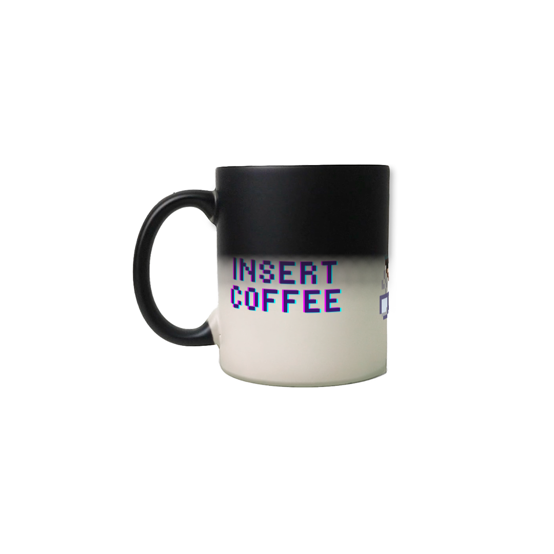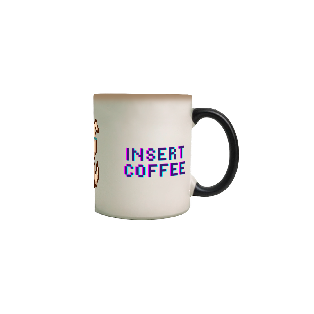 Para os entusiastas do estilo nerd e retrô, nossa caneca mágica exibe um adorável cachorro em pixel art segurando um café com a frase 'Insert Coffee'. Perfeita para dar um start no seu dia com um toque de nostalgia, esta caneca revela a imagem divertida ao ser preenchida com bebidas quentes. Ideal para gamers e amantes da cultura geek, cada gole é um lembrete divertido de que, às vezes, tudo que precisamos é de um 'power-up' em forma de café.