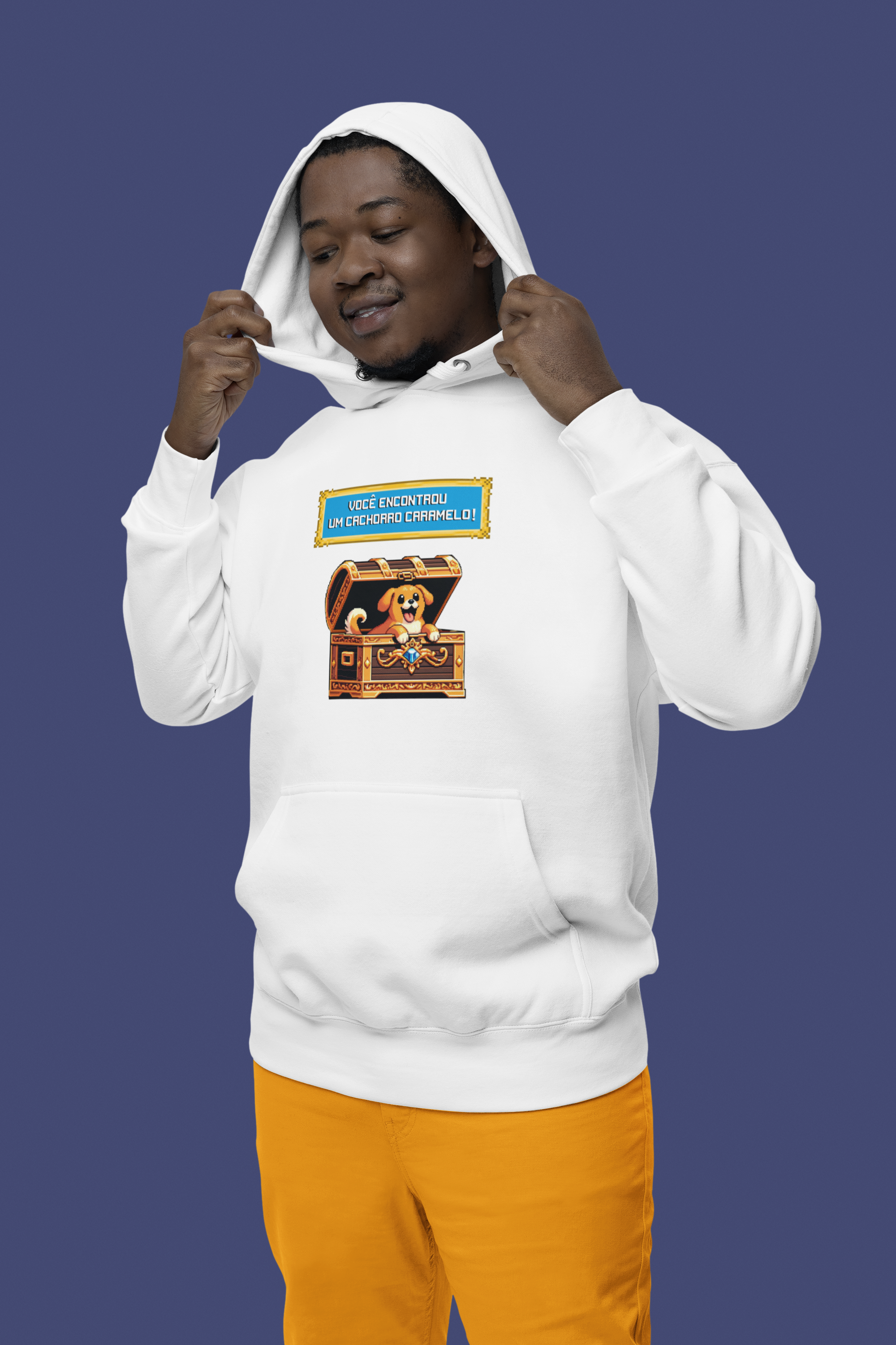 Características: Bolso frontal tipo canguru, capuz com cordão e acabamento confortável, ideal para uso pessoal e corporativo.